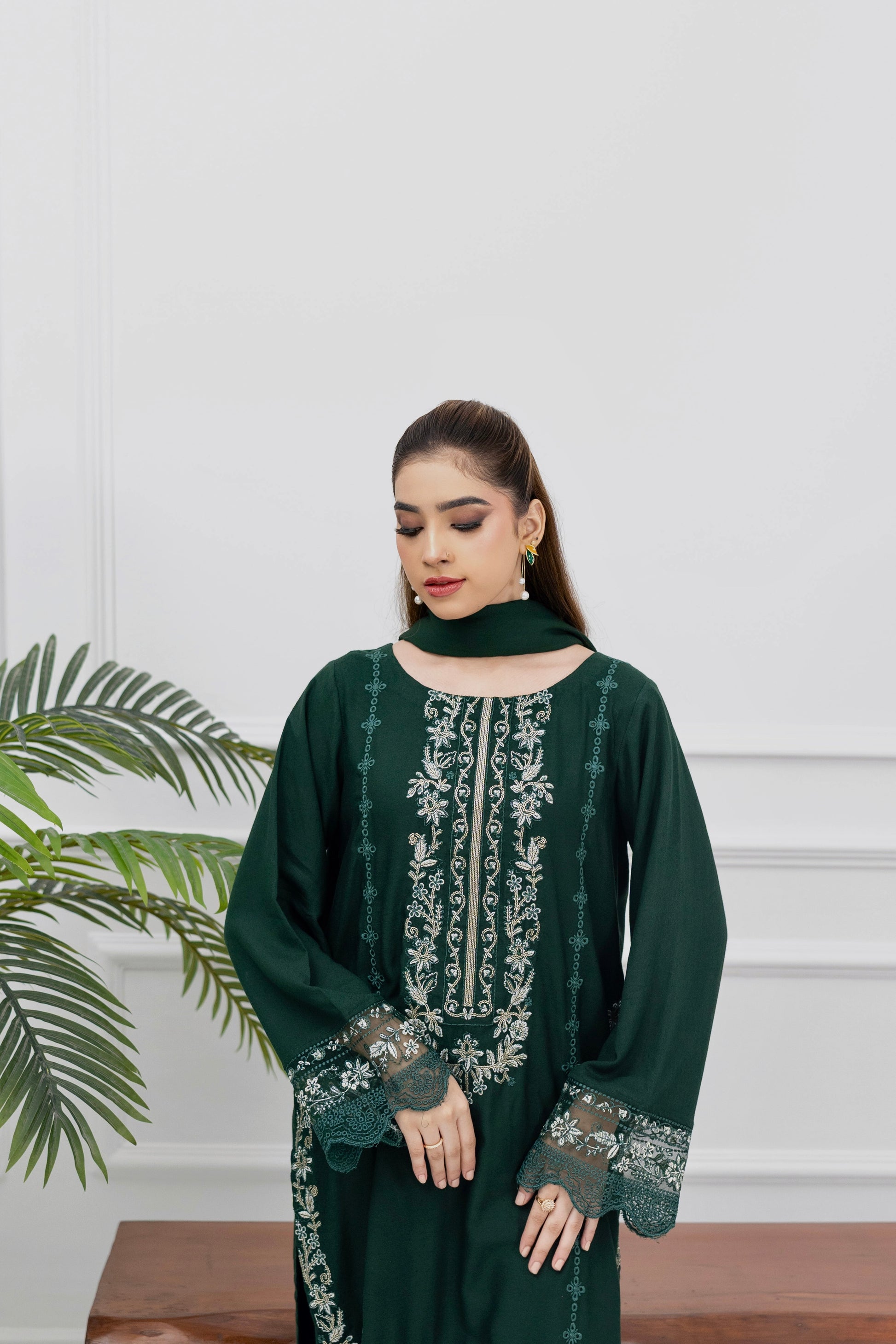 LUXURY GREEN KARANDI 3 PCS READY TO WEAR SET (W-1002)
